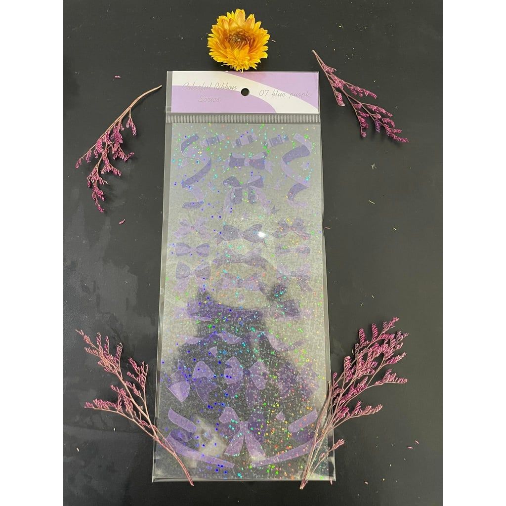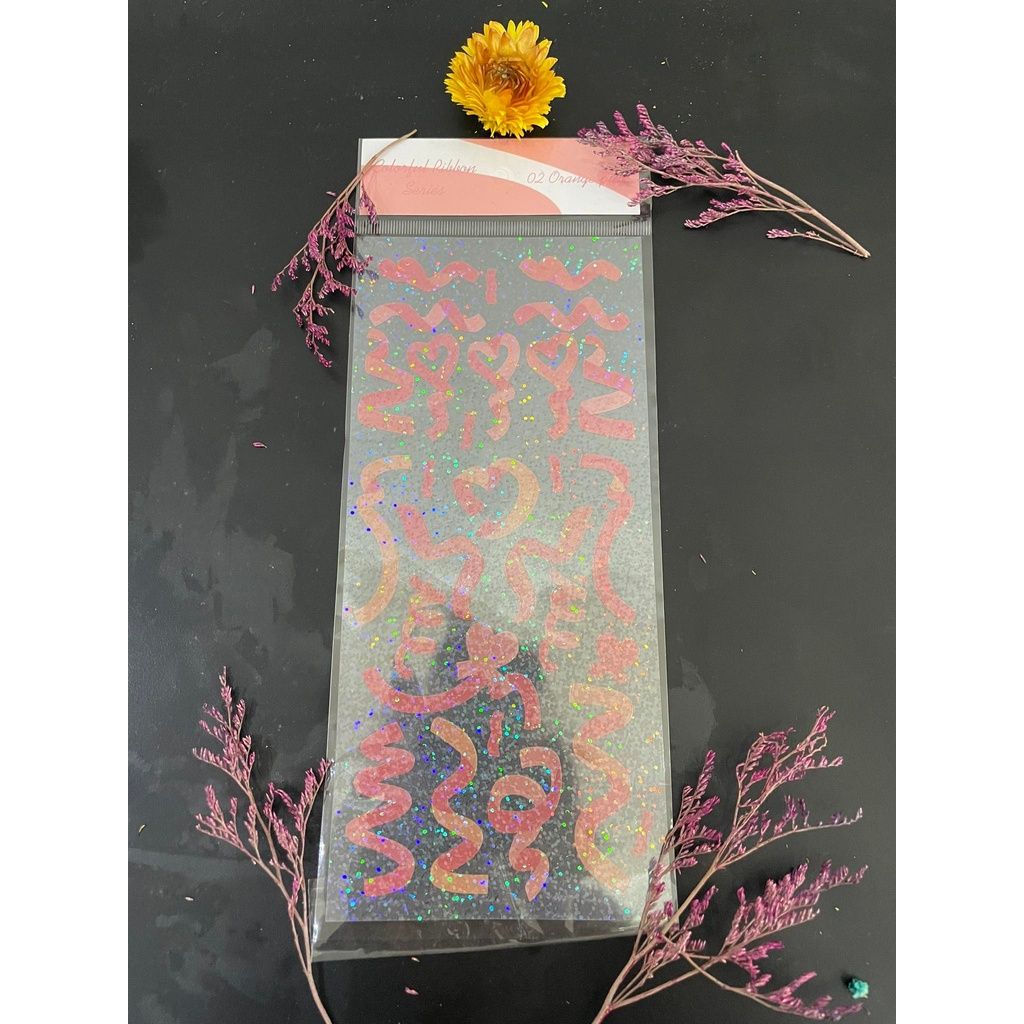 1 nhãn dán kim tuyến sticker colorful ribbon series nhiều màu trang trí sổ sách, tài tiệu, tập vở, top loader các loại