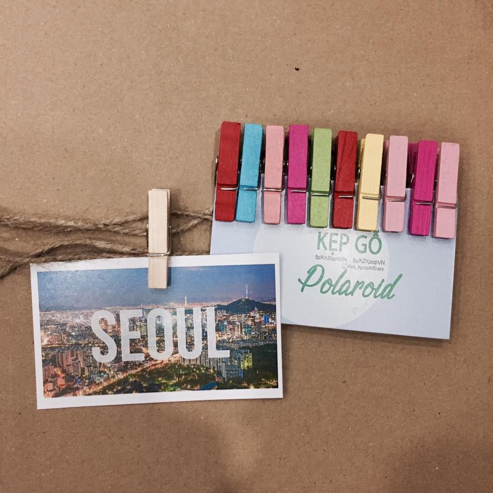 Combo gồm kẹp gỗ nhiều màu sắc, tha hồ cho việc set up góc nhỏ cho thần tượng của mình.