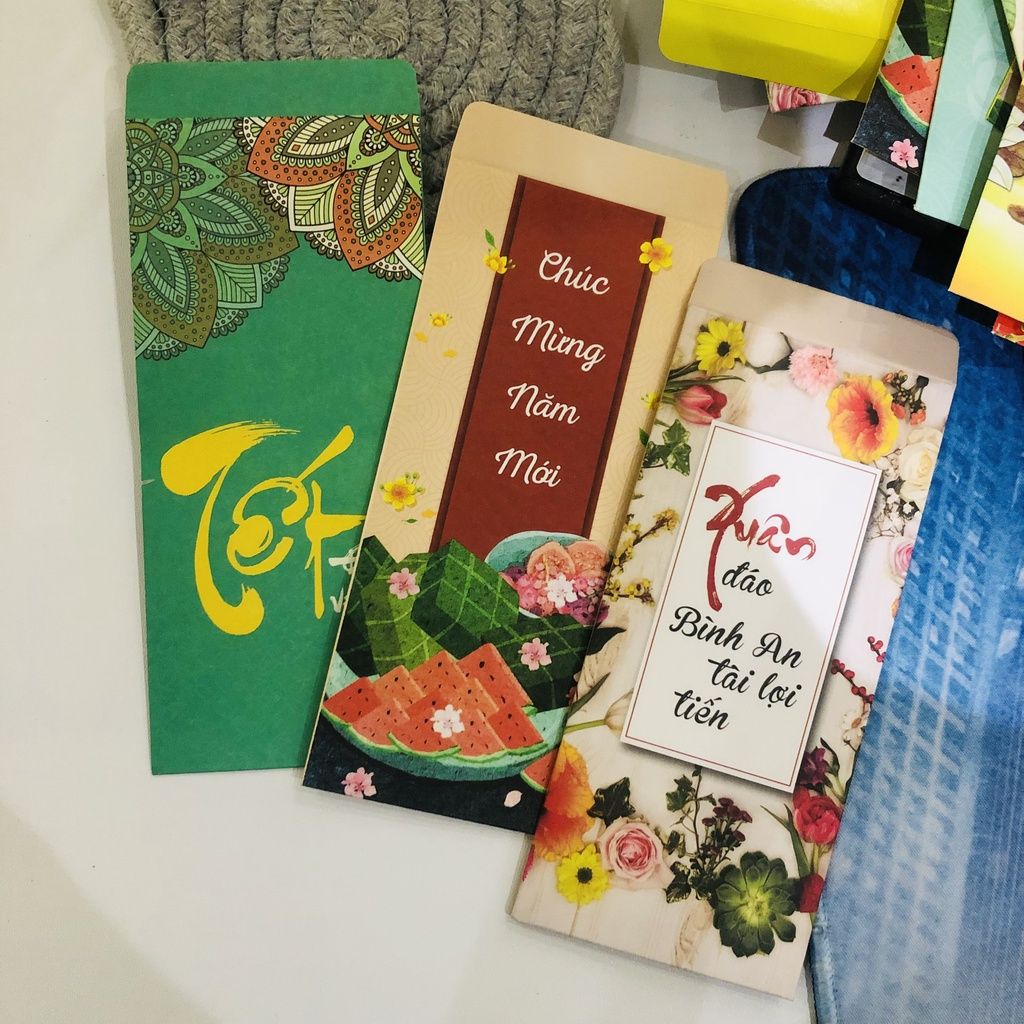 SẢN PHẨM:BỘ 5 CHIẾC BAO LÌ XÌ TẾT chủ đề XUÂN ĐẠI CÁT, TẾT VẠN YÊU THƯƠNG