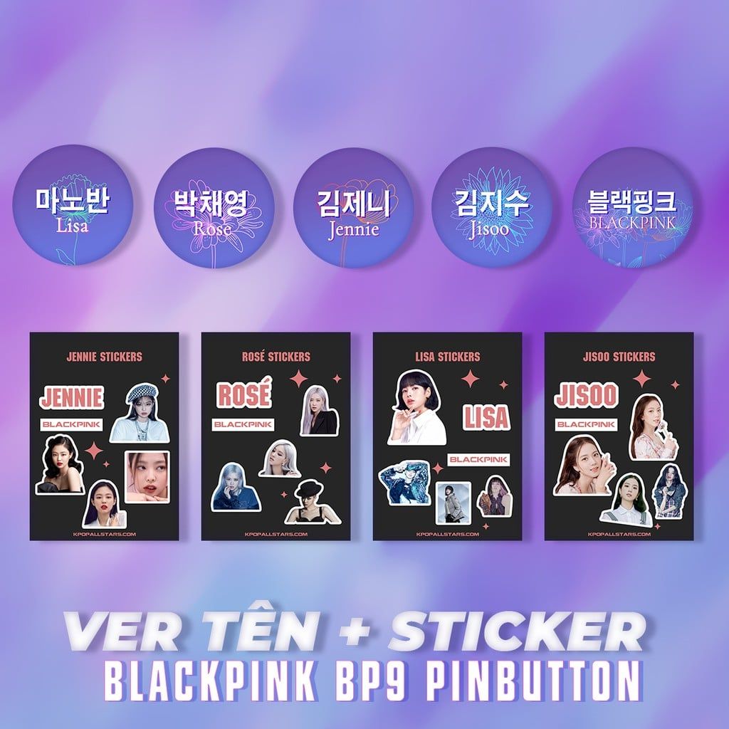Set 4 Sticker Blackpick Và huy hiệu cài áo BlackPink BP9